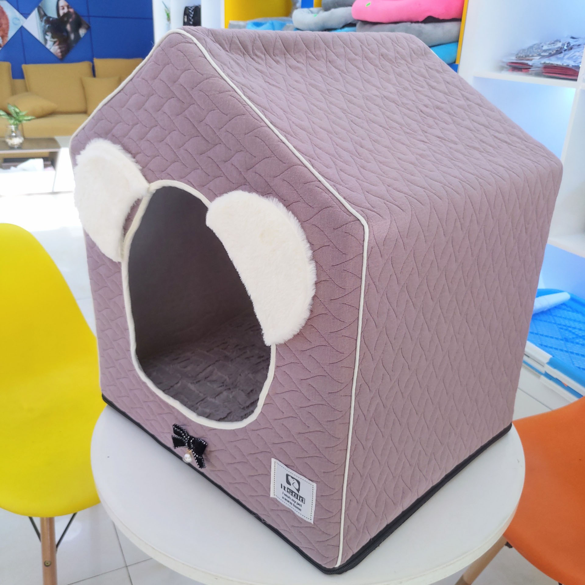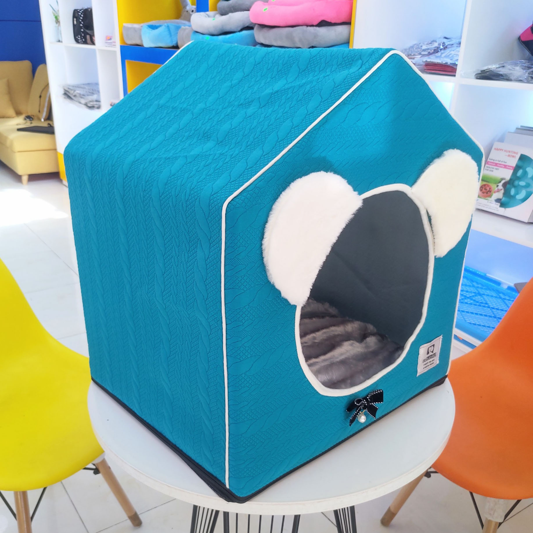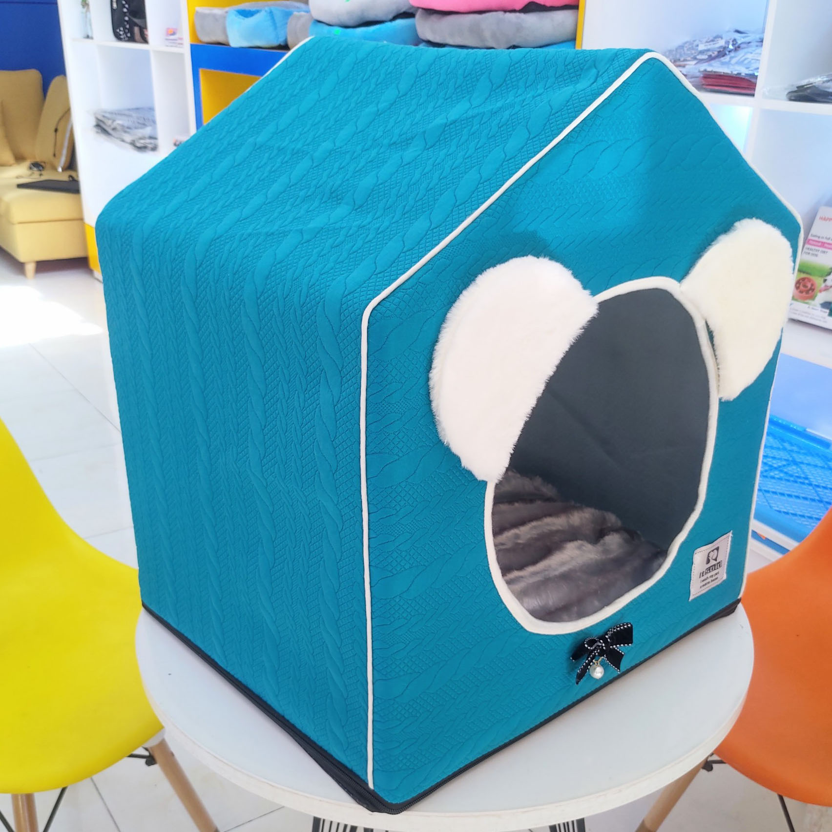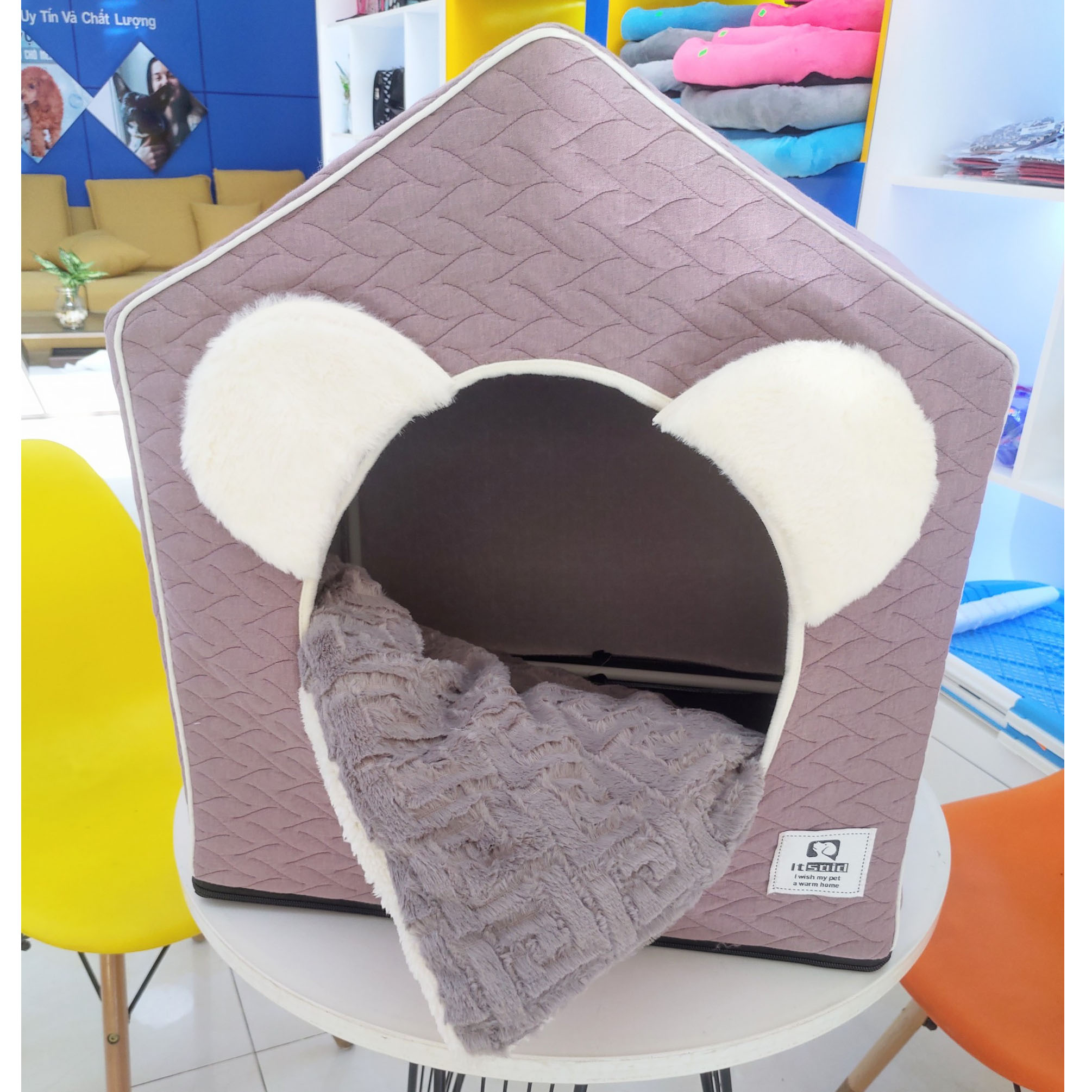 Màu sắc: Đệm hình ngôi nhà của Siêu Pet có màu sắc rất đa dạng để mọi người có thể thoải mái lựa chọn. Ví dụ như màu xanh da trời, màu tím nhạt...